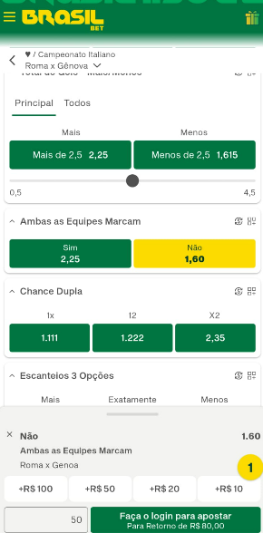 Esses mercados estão disponíveis em grande parte das partidas, com odds ajustadas em tempo real, especialmente nos jogos ao vivo.