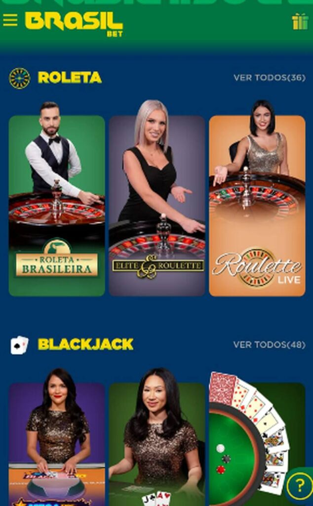 Além dos caça-níqueis, a Brasil Bet também conta com uma seção de cassino ao vivo, com mesas de roleta, blackjack, bacará e game shows. E tudo isso com dealers reais e transmissão em tempo real.