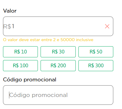 - 3 – Defina o valor: Insira quanto deseja depositar dentro dos limites da casa;