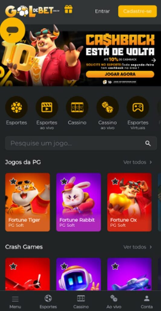 Quem aposta na Goldebet encontra mercados esportivos variados, incluindo futebol nacional e internacional, basquete, tênis e até eSports. Para os fãs de cassino, há uma boa variedade de slots, roleta ao vivo e provedores populares, tudo isso com promoções ativas como cashback semanal e desafios promocionais.