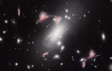 Astrônomos identificam uma galáxia rara, distorcida pela lente gravitacional, em forma de ponto de interrogação