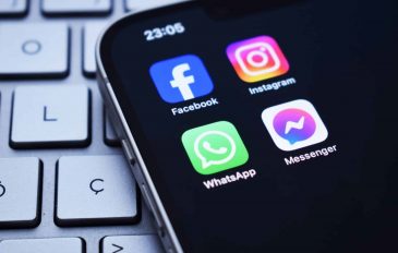 Logos de Facebook, Instagram, WhatsApp e Messenger em um smartphone
