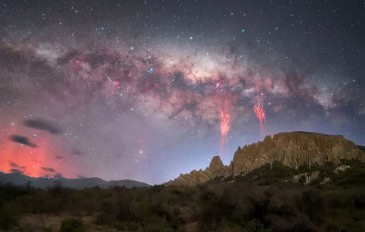 Fotógrafo captura duendes vermelhos e auroras com a Via Láctea ao fundo
