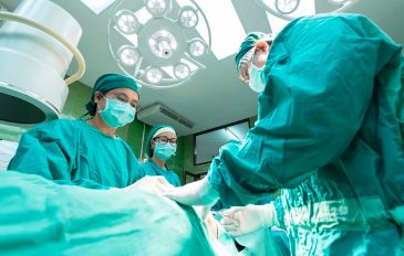 Médico e enfermeiras durante cirurgia