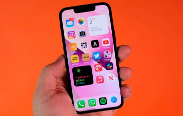 Pessoa segurando iPhone com tela inicial cheia de ícones e widgets de aplicativos