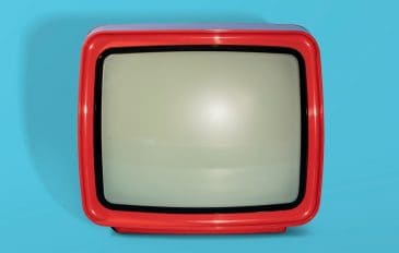 TV antiga vermelha na frente de um fundo azul