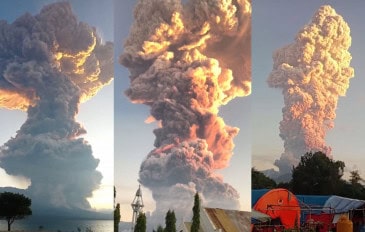 Erupção de vulcão cria nuvem colorida gigante na Indonésia