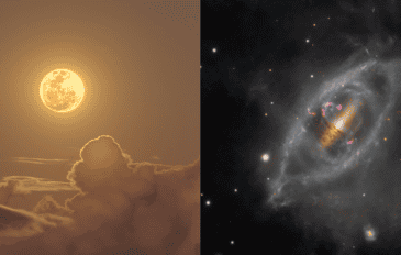 Lua dourada e galáxia da hélice nas Imagens Astronômicas da Semana