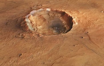 Imagem revela cratera em forma de borboleta, um formato raro criado por um impacto que atingiu uma camada de gelo subterrâneo