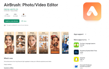 Aplicativo AirBrush na Play Store