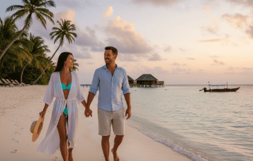 Casal em férias na praia. Imagem criada com IA