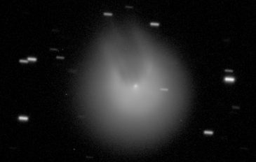 O cometa vulcânico 12P/Pons-Brooks (12P) recebe o apelido de "Cometa do Diabo" porque sua cauda fica parecida com chifres quando ele explode