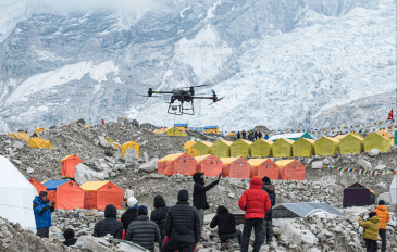 O drone transportou três cilindros de oxigênio e outros materiais do Acampamento Base do Everest para o Campo 1, a 6 mil metros de altitude