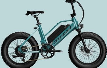 A RipRacer é uma bicicleta elétrica da Juiced Bikes com pneus bem grossos tanto para estrada como off-road, além de AirTags para rastreamento