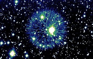 Filamentos finos em forma de fogos de artifício foram ejetados em uma explosão estelar incomum no centro de uma nebulosa chamada Pa 30