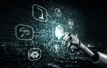 Imagem une elementos de inteligência artificial, pesquisa, robôs e chatbots