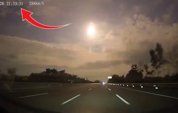 Moradores da cidade de Maoming, no sul da China, avistaram um meteoro 'bola de fogo' caindo do céu e transformando a noite em dia