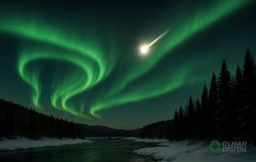 Meteoro em chamas risca os céus de Canadá e EUA enquanto a aurora boreal brilha em espetáculo simultâneo de luzes e cores
