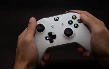 Mãos segurando o controle do Xbox One S da Microsoft
