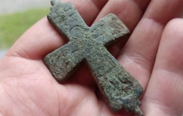 O relicário em forma de cruz, feito de liga de cobre, era usado no peito por cristãos medievais e possui grande significado espiritual