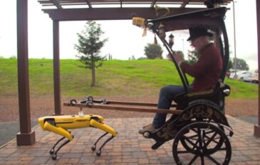 Inspirado pelos antigos riquixás asiáticos, veículo é puxado por Spot, cão-robô da Boston Dynamics