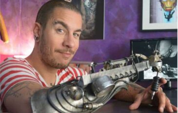 Prótese adiciona máquina de tatuagem ao braço amputado de francês