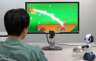 O sistema permite o diálogo com humanos, fazendo com que o robô fique feliz quando ganha e frustrado quando perde no videogame
